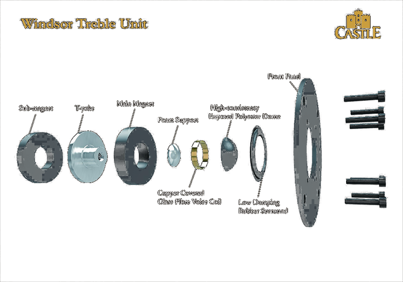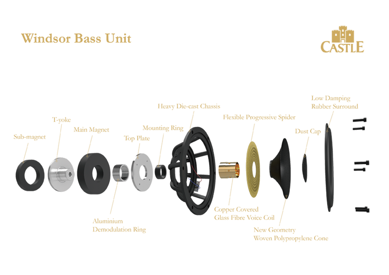 Castle Windsor Duke er udstyet med 8" bas enhed, og en 1" textile-dome diskant enhed, som sammen sikrer en optimal balance i lyden. Alle enheder er blevet designet fra bunden til Windsor Duke modellen og på trods af retro-looket benytter Castle de nyeste teknologier - naturligvis med øje for, hvad der er også er bedst for lyden - dvs støbte metalkomponenter, vævede polypropylene enheder samt stive og rubuste trækabineter, der er optimeret til bedst mulige præcision og ydelse i lyden.