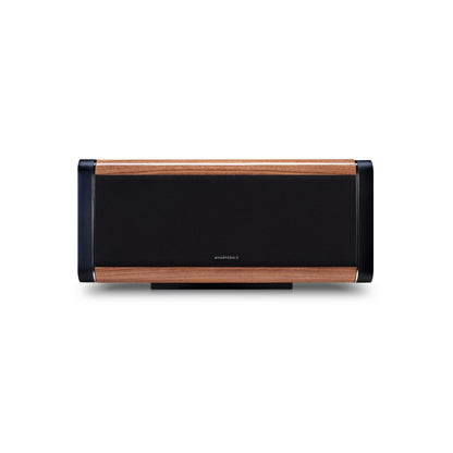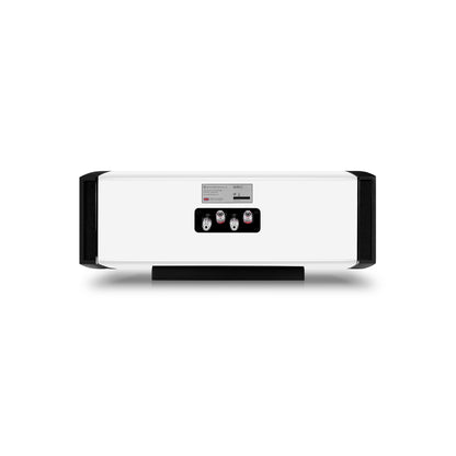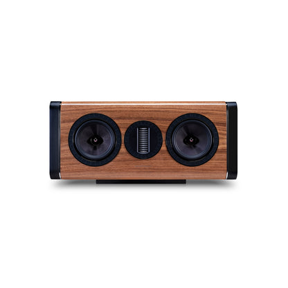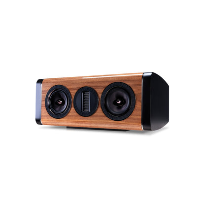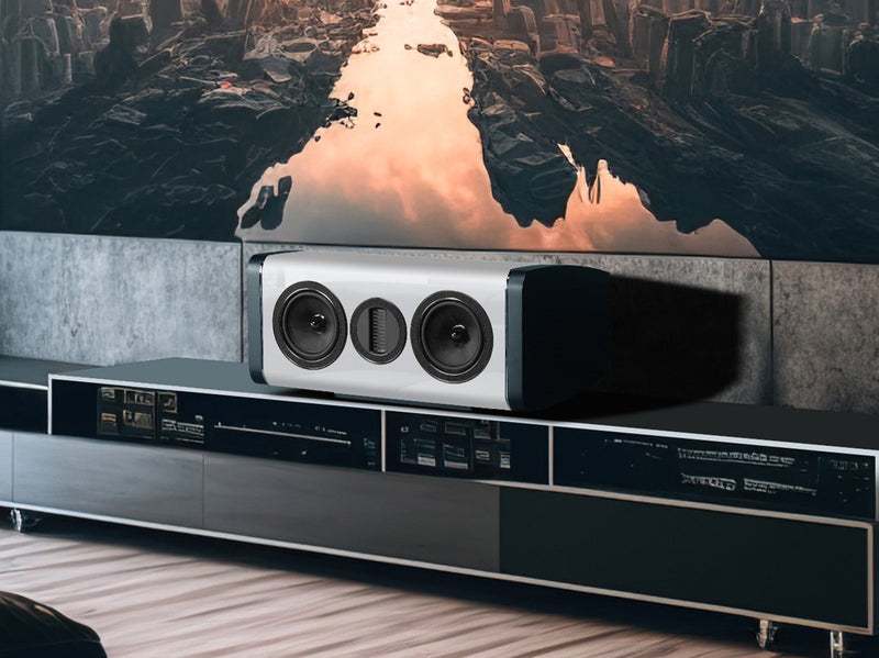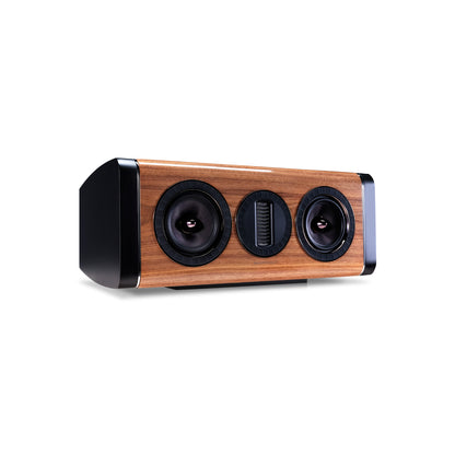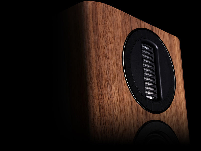 AURA-kabinetterne er på mange måder et kunstværk. De fås i sort, hvid og en valnød-fineret ægte træfinish, og hvert kabinet er lakeret og poleret for at præsentere et smukt møbel, som du vil være stolt af at have i dit hjem, på niveau med den betydeligt dyrere ELYSIAN-serie. De glatte kurver på kabinettet er ikke kun iøjnefaldende, de hjælper også med at sprede den akustiske output fra driverne jævnt i rummet uden uønskede refleksioner fra skarpe kanter.
